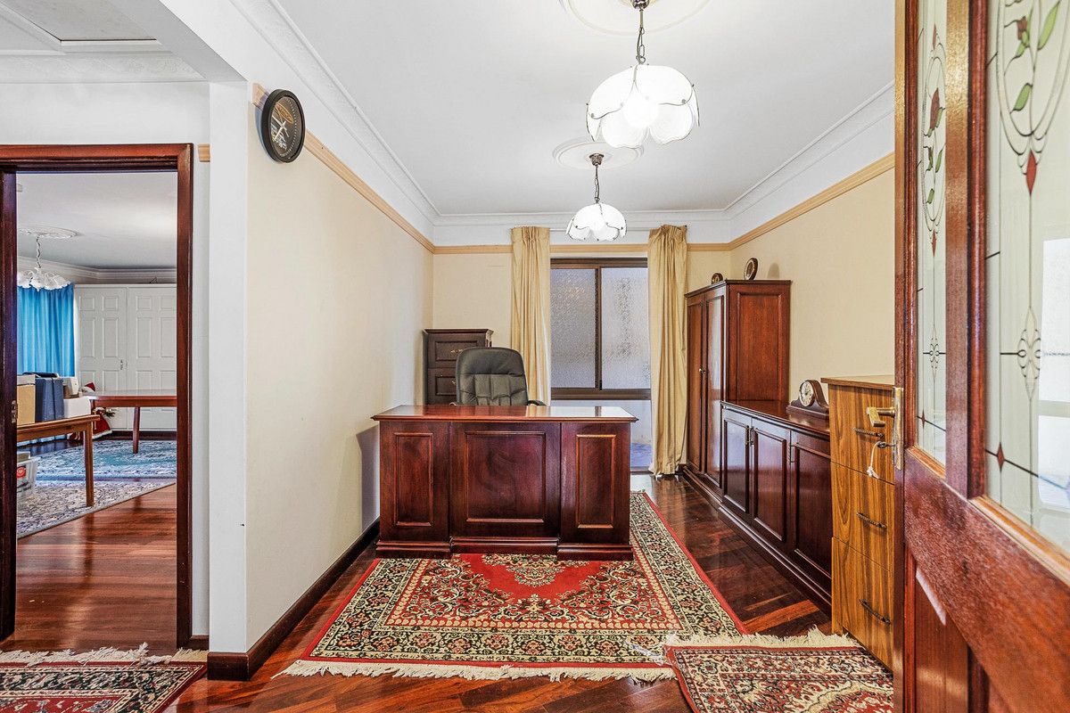 The latter seamlessly flows outdoors to a pitched patio-entertaining area at the rear, whilst also linking to an elegant formal-lounge room via double doors. Double doors off here also reveal a paved back courtyard, with a gorgeous single French door extending to another intimate alfresco, as well as benefitting from gated street access. Adjacent is a separate home office that forms part of a separate living quarters where a massive fifth bedroom has ample built-in wardrobe space and enjoys double French door access to the front of the property.