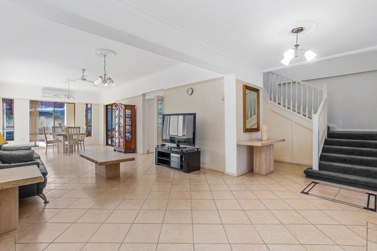The home offers approximately 547sqm of total living, outdoor and garage space and comprises the most highly functional of family floor plans. Downstairs, double sliders reveal a casual front lounge/living room off the entry, comprising of a heater on the wall and a wooden bar area that leads through to a tiled formal dining room.